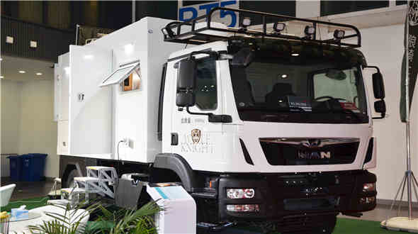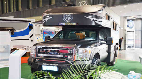 本次展会,广泰精心准备了纯碳纤维福特越野房车和曼底盘改制的全地形越野房车两款最新产品。纯碳纤维福特越野房车填补了国内该款房车领域的空白,由广泰独家研发制作的六面一体碳纤维舱体和福特F350底盘优良的操控性和越野性相结合,强强相加在专业越野房车领域独树一帜,得到了观展的专业用户的高度评价,市场反映良好。曼底盘改制的全地形越野房车采用了广泰独家研发长达两年时间的柔性悬架技术,利用有限元分析及应力测试准确测量副梁的最小应力点,使箱体受应力最小以保护箱体在通过恶劣路况时不受扭力破坏。